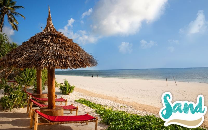 L'hotel si affaccia su una spiaggia privata, attrezzata con lettini prendisole, tavolini e ombrelloni fino ad esaurimento. Questo è il luogo ideale per abbronzarsi e rilassarsi sotto il caldo sole africano. Il tratto di mare che si trova fra il reef e la spiaggia consente di fare nuotate in tutta sicurezza e una splendida lingua di sabbia corallina, che si inoltra per decine di metri nelle acque turchesi, permette di crogiolarsi al sole. La spiaggia è soggetta, come tutte le coste dell’isola, al fenomeno delle maree che regalano paesaggi ogni giorno diversi. Vengono forniti teli mare su cauzione.